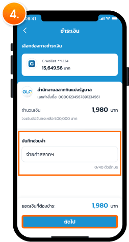 ตรวจสอบความถูกต้อง โดยสามารถใส่บันทึกช่วยจำได้ และกด "ถัดไป"